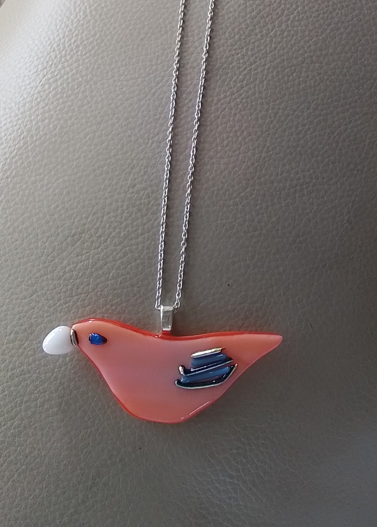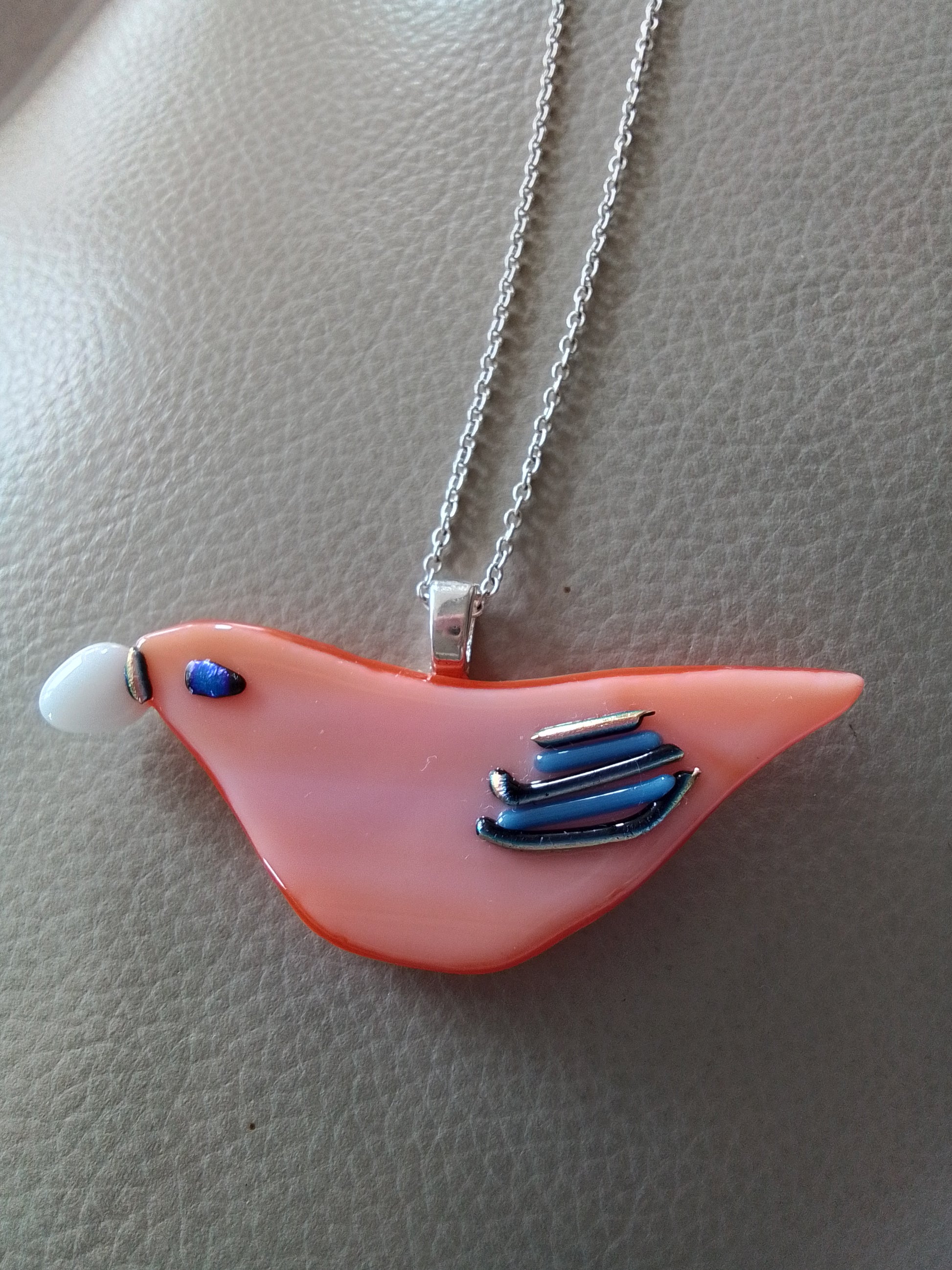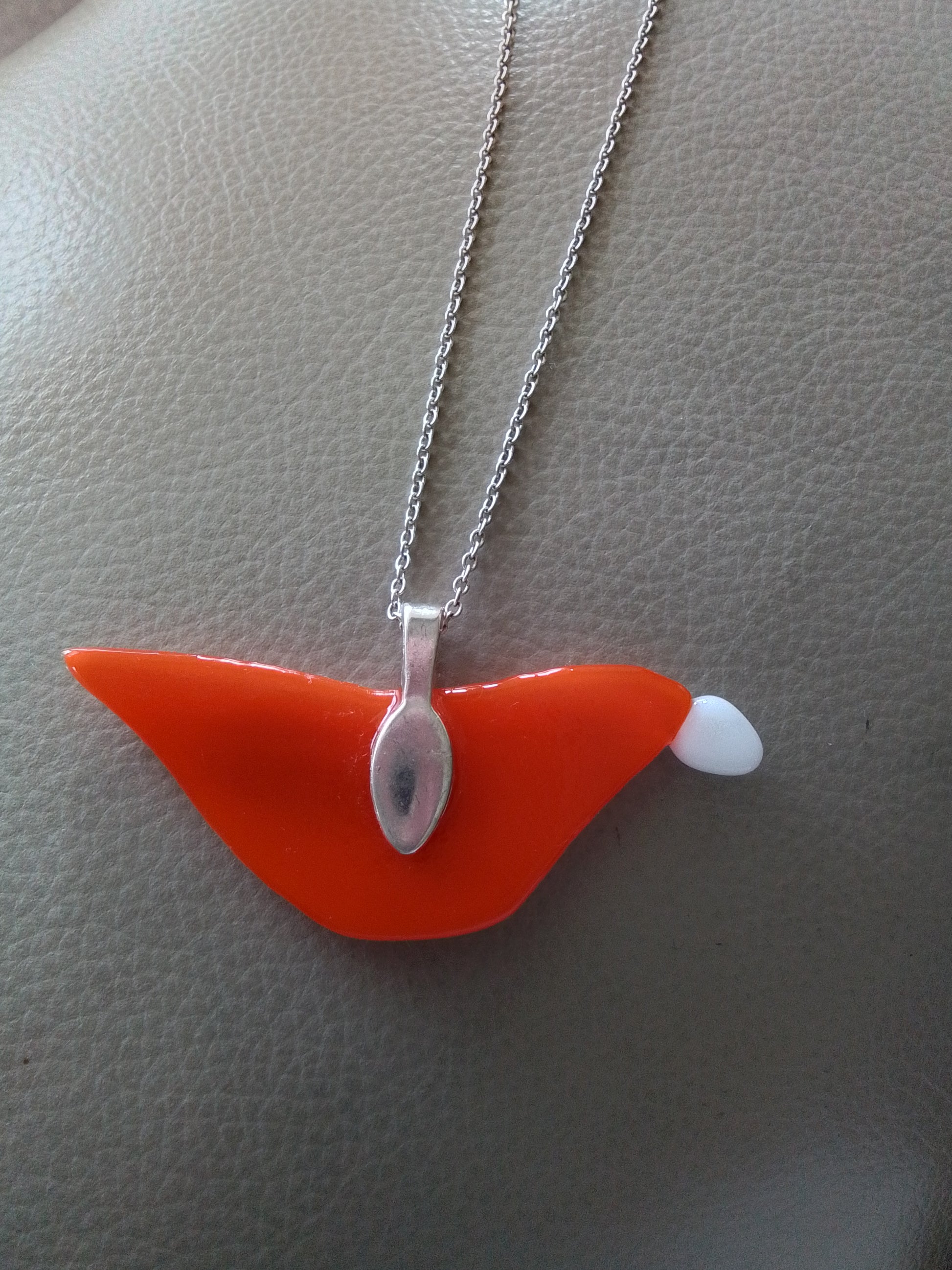 Orange fused glass handmade pendant. Add some fun to your jewellery with this funky individual pendant.