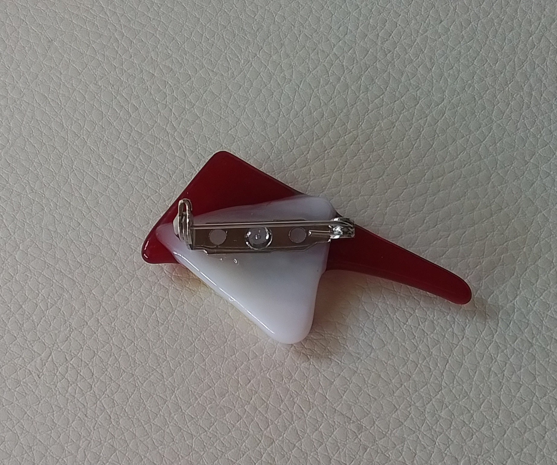 Art Deco look to this brooch is a statement style . Stunning worn against black clothing. Handmade Fused Glass made in New Zealand.